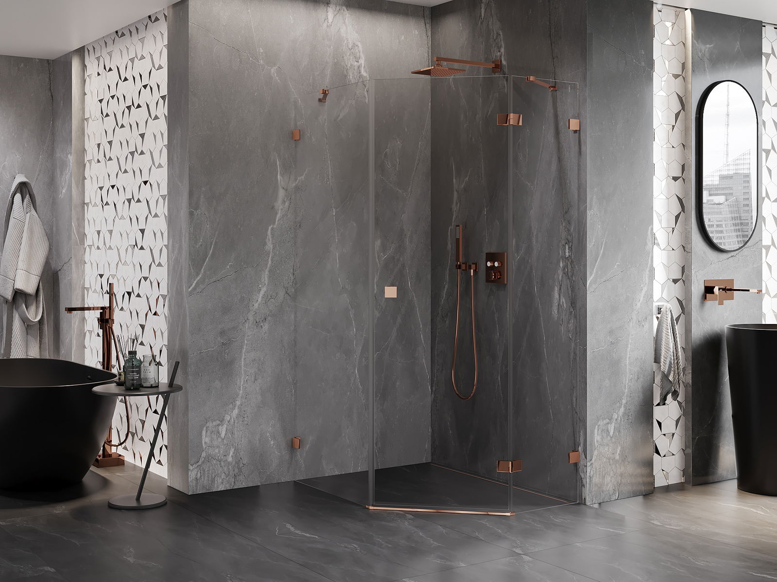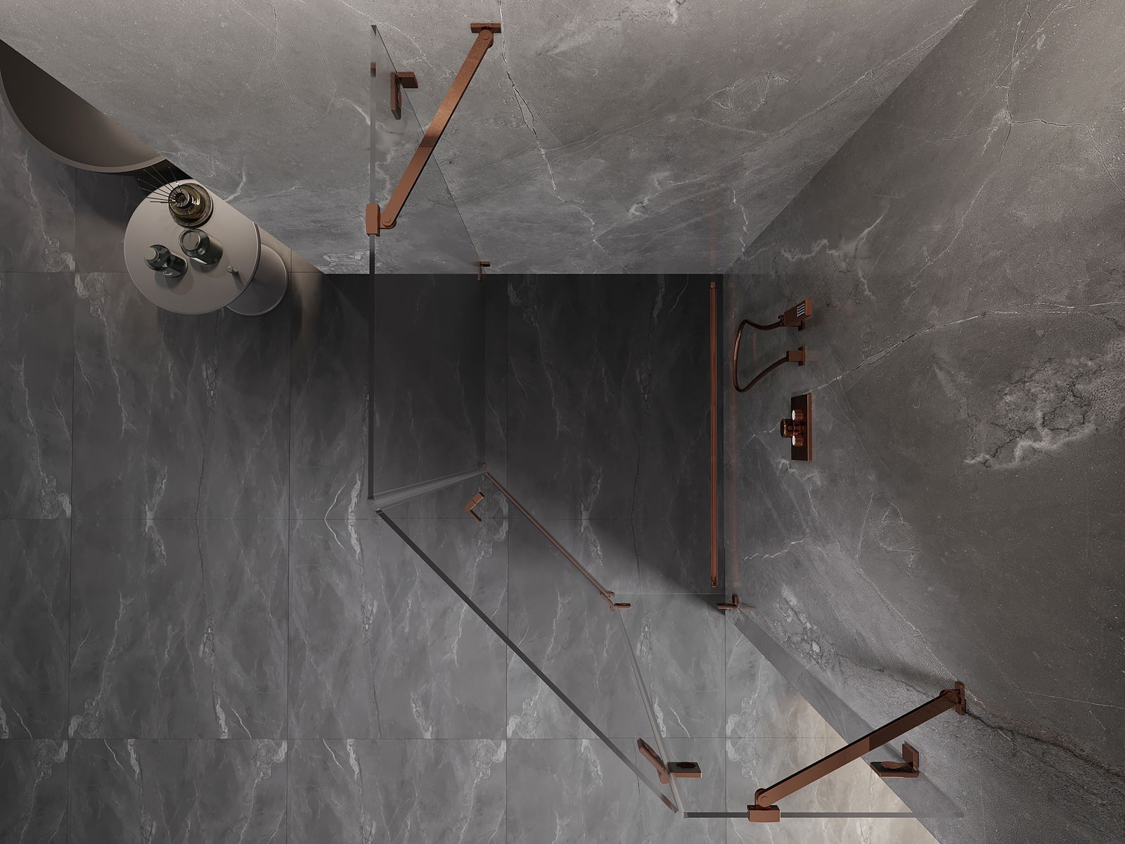 Mexen Lunar петоъгълна душ кабина с отваряща се врата дясна 80 x 90 см, прозрачна, розово злато - 831-080P-090L-60-00-P