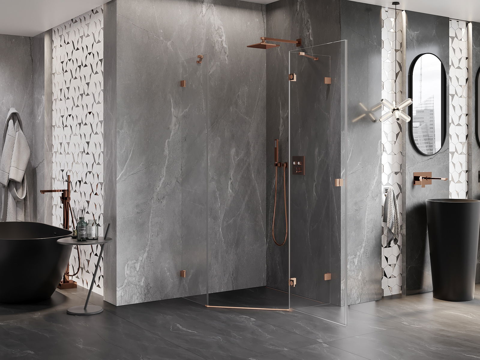 Скобите и пантите са изработени от много издръжлив месинг и създават плосък стъклен панел. Това е отличен избор, който съчетава елегантност, издръжливост и модерен дизайн. Благодарение на такива решения, душът придобива естетика и същевременно улеснява поддържането на чистота.