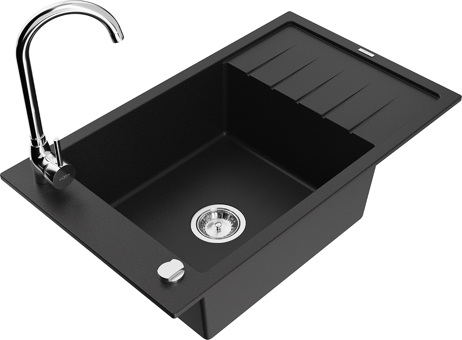 Mexen Elias гранитна мивка с 1 отделение с отцедник и кухненски смесител Telma, черен - 6511-77-670200-00