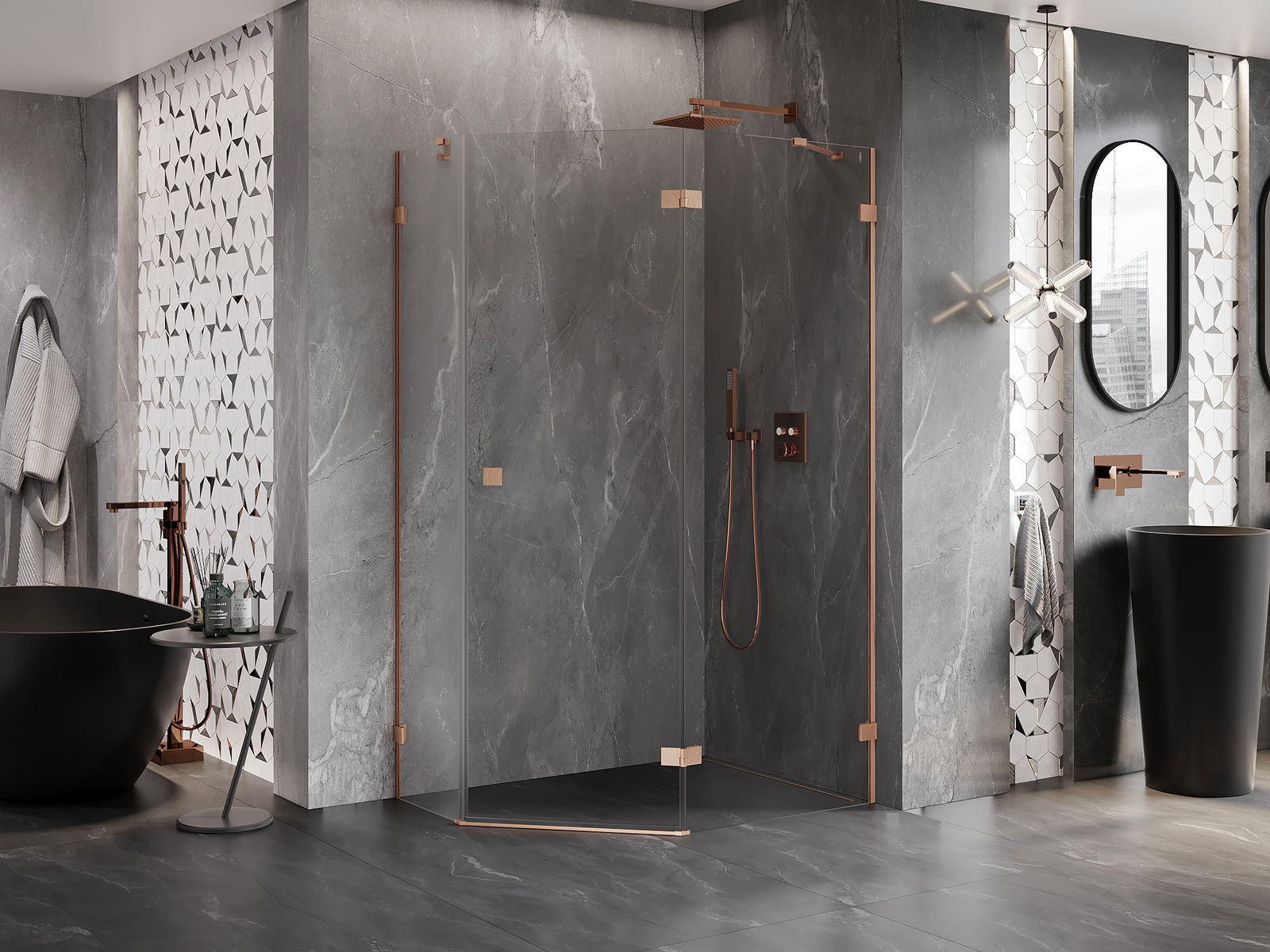 Mexen Lunar душ кабина петоъгълна отваряема дясна 100 x 90 см, прозрачна, мед сатен - 831-100P-090L-65-00-P