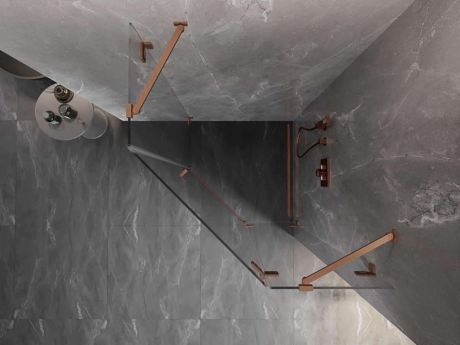 Mexen Lunar петоъгълна душ кабина с врата на панти дясна 100 x 100 см, прозрачна, четкана мед - 831-100P-100L-65-00-P