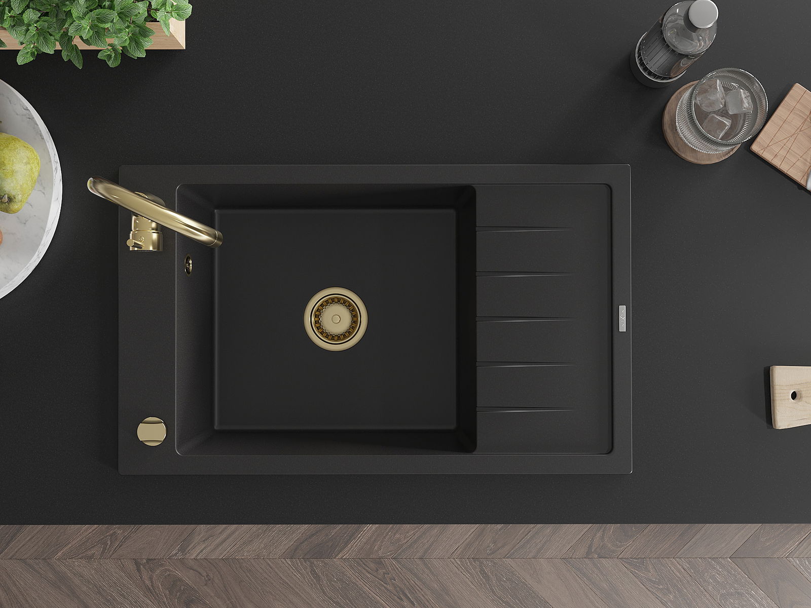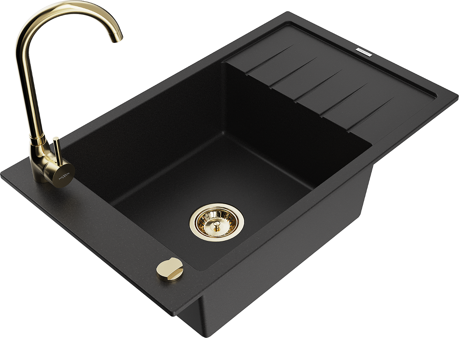 Mexen Elias мивка гранитна 1-камерна с отцедник и кухненски смесител Telma, черен - 6511-77-670200-50
