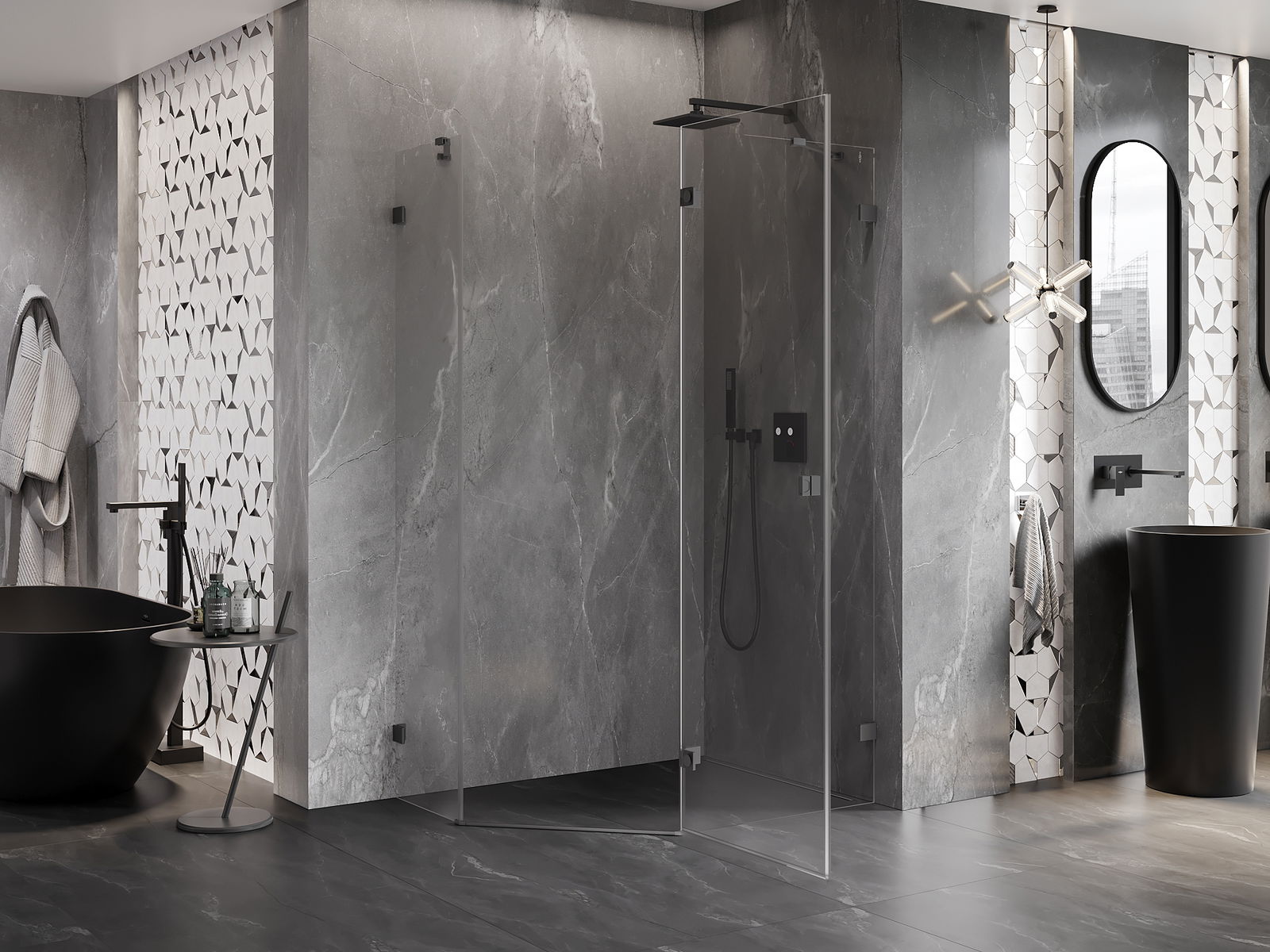 Скобите и пантите са изработени от много издръжлив месинг и създават плосък стъклен панел. Това е отличен избор, който съчетава елегантност, издръжливост и модерен дизайн. Благодарение на такива решения, душът придобива естетика и същевременно улеснява поддържането на чистота.