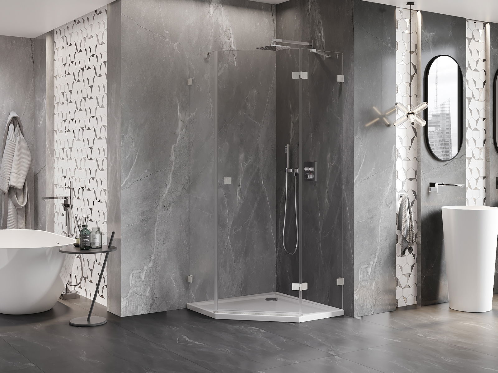 Mexen Lunar петостенна душ кабина с десни панти 90 x 90 см, прозрачна, матиран никел - 831-090P-090L-97-00-P
