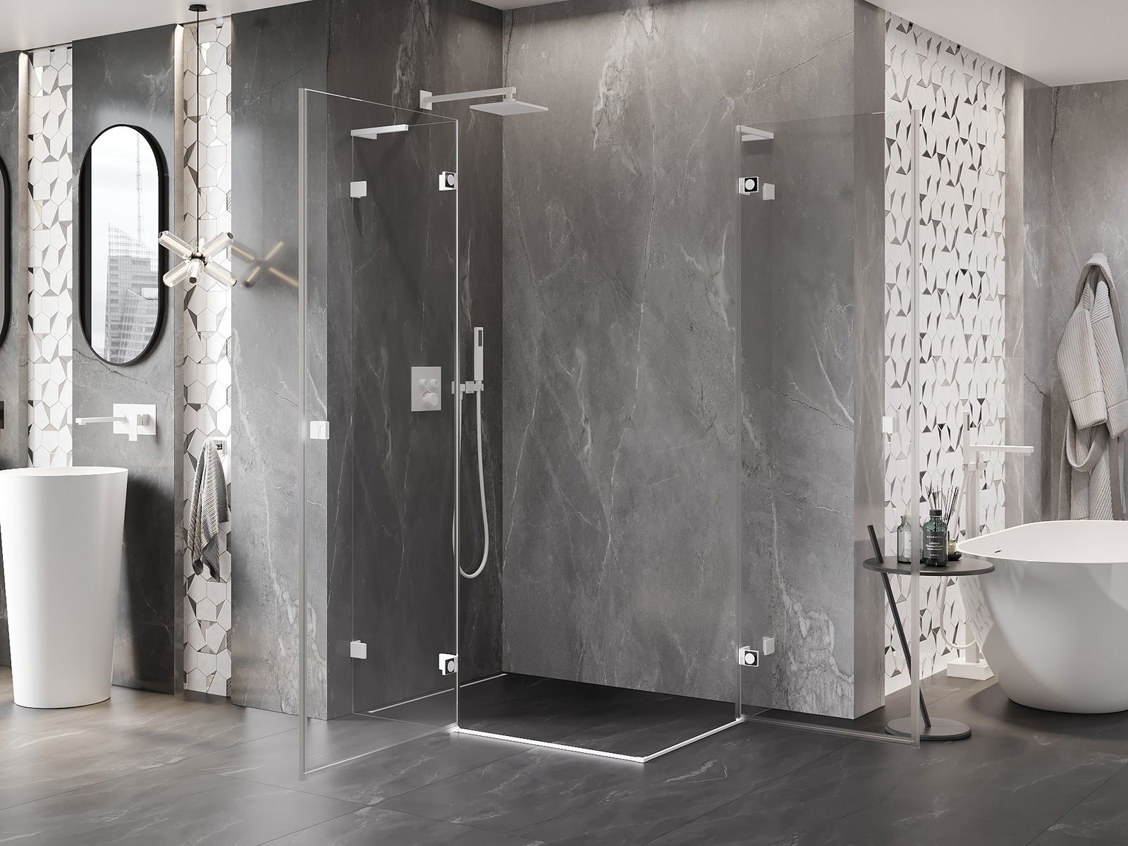 Скобите и пантите са изработени от много издръжлив месинг и създават плосък стъклен панел. Това е отличен избор, който съчетава елегантност, издръжливост и модерен дизайн. Благодарение на такива решения, душът придобива естетика и същевременно улеснява поддържането на чистота.
