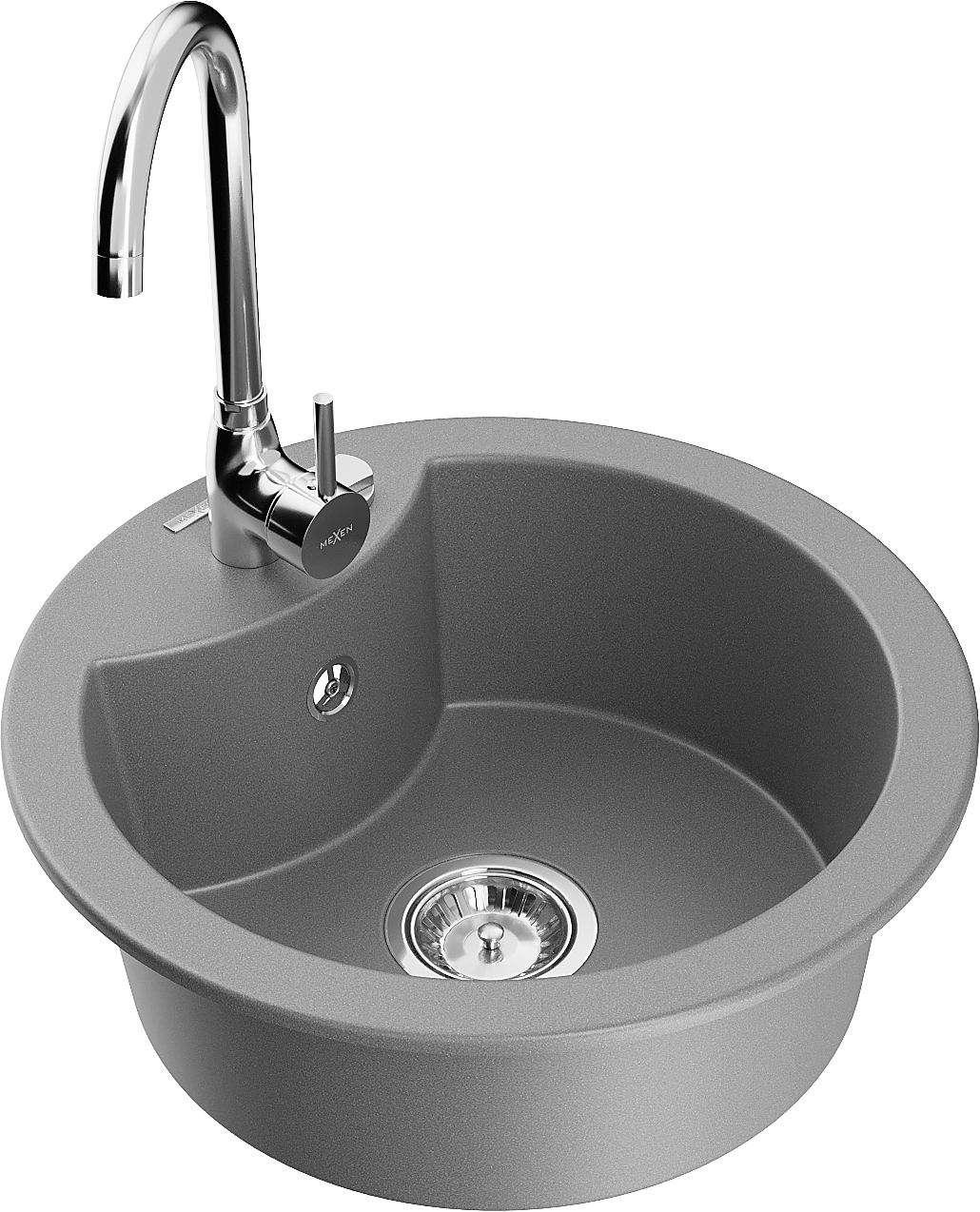 Mexen Diego гранитна мивка с 1 корито с кухненски смесител Telma, сива - 6512-71-670200-00