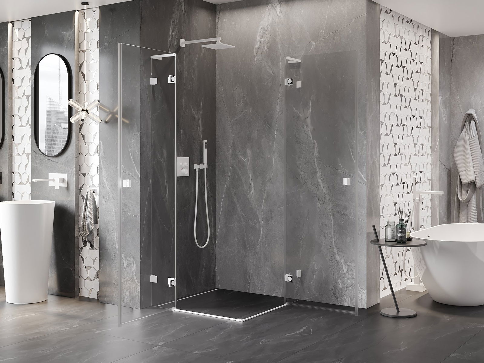 Скобите и пантите са изработени от много издръжлив месинг и създават плосък стъклен панел. Това е отличен избор, който съчетава елегантност, издръжливост и модерен дизайн. Благодарение на такива решения, душът придобива естетика и същевременно улеснява поддържането на чистота.