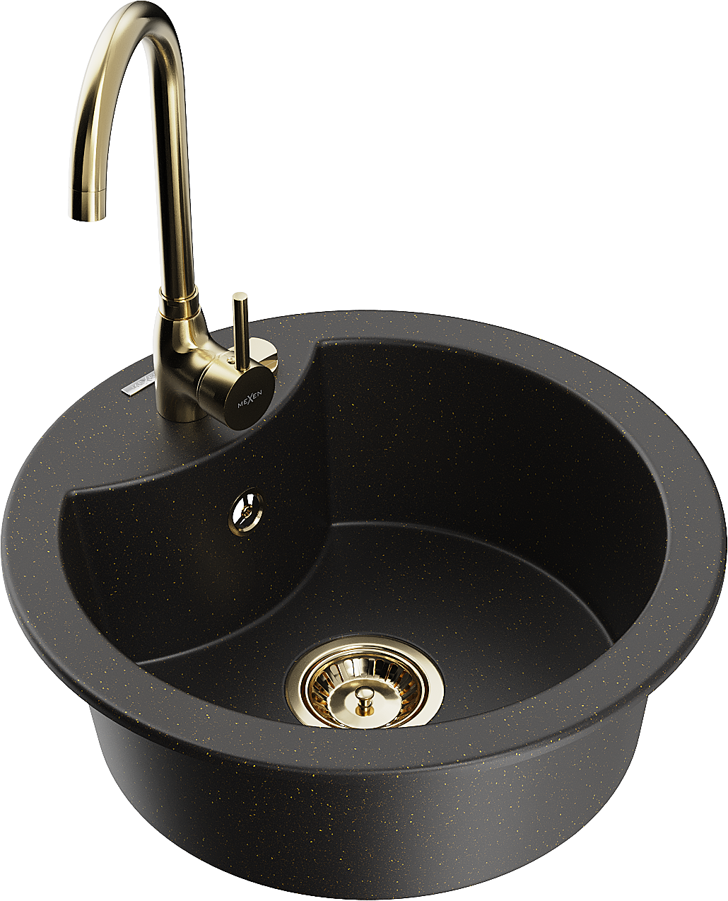 Mexen Diego гранитна мивка с 1 отделение и кухненски смесител Telma, черен/златен - 6512-75-670200-50