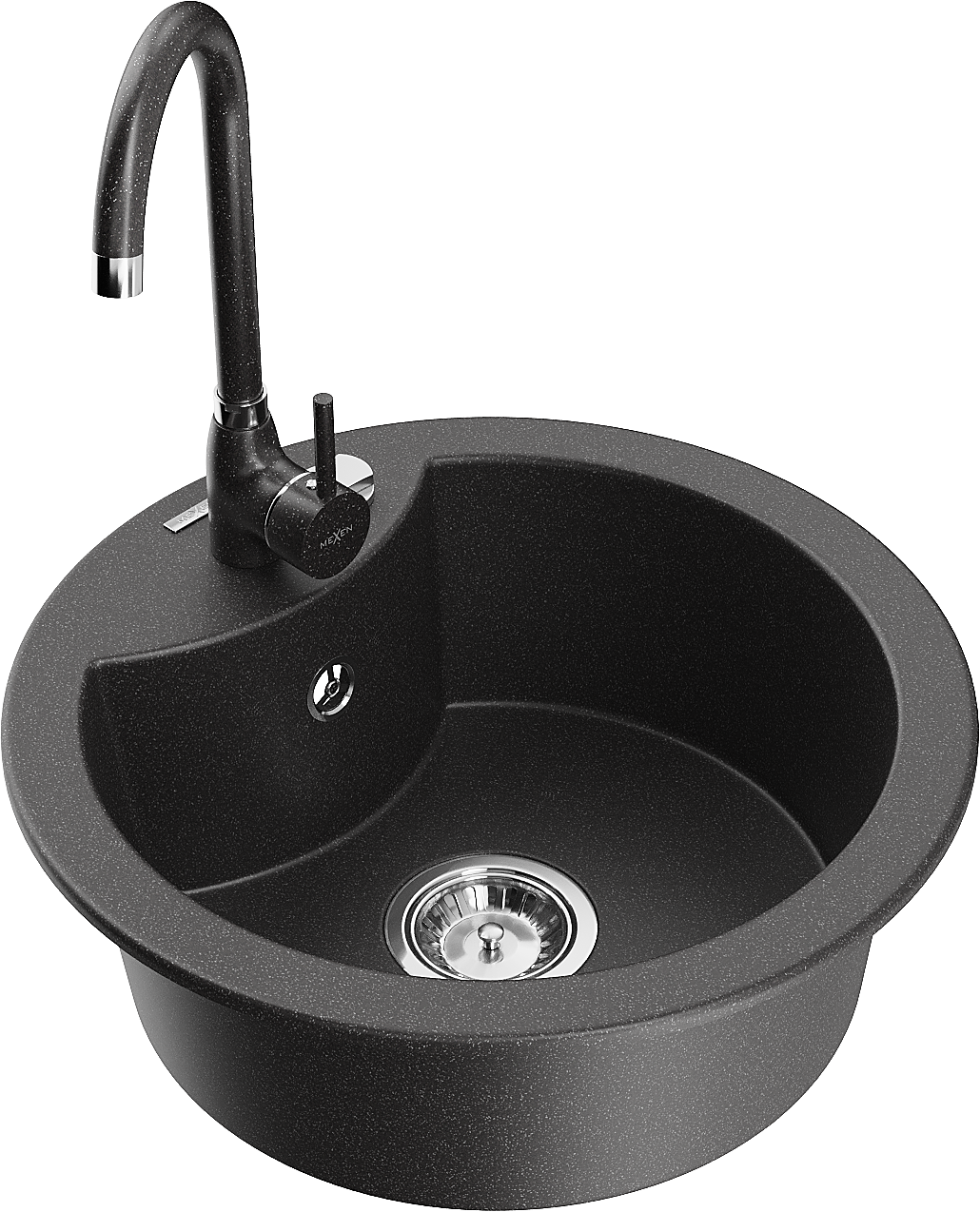 Mexen Diego гранитна мивка с 1 отделение и кухненски смесител Telma, черно напетнан - 6512-76-670200-76