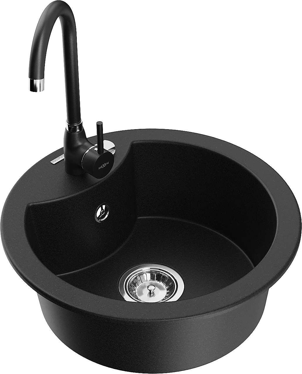 Mexen Diego гранитна мивка с една камера с кухненски смесител Telma, черен - 6512-77-670200-70