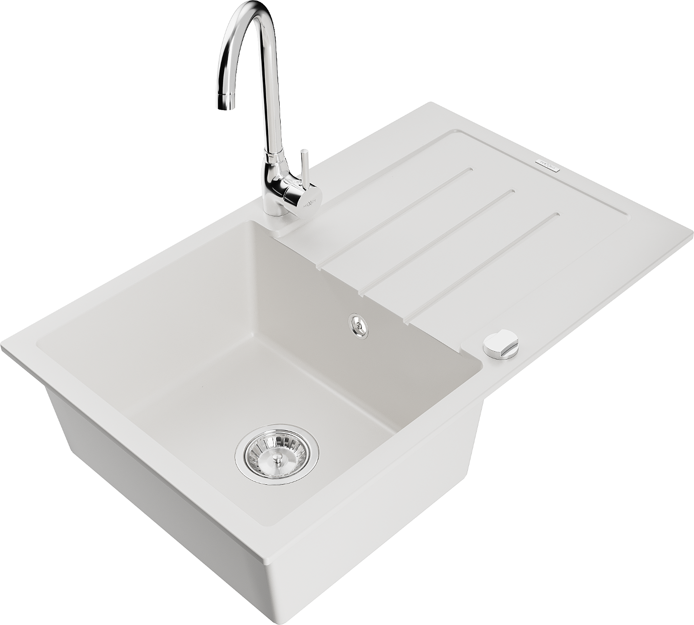Mexen Bruno гранитна мивка с едно корито с отцедник и кухненски смесител Telma, бял - 6513-20-670200-00