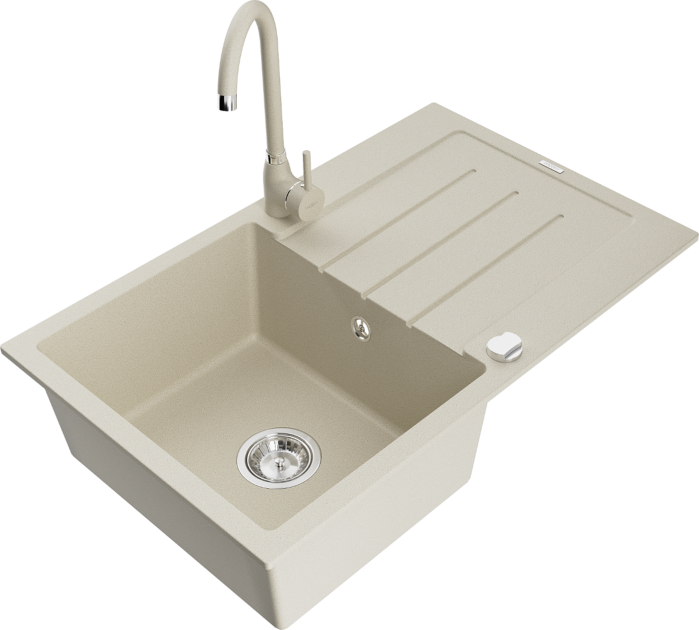 Mexen Bruno гранитна мивка с 1 корито с отцедник и кухненски смесител Telma, бежово - 6513-69-670200-69
