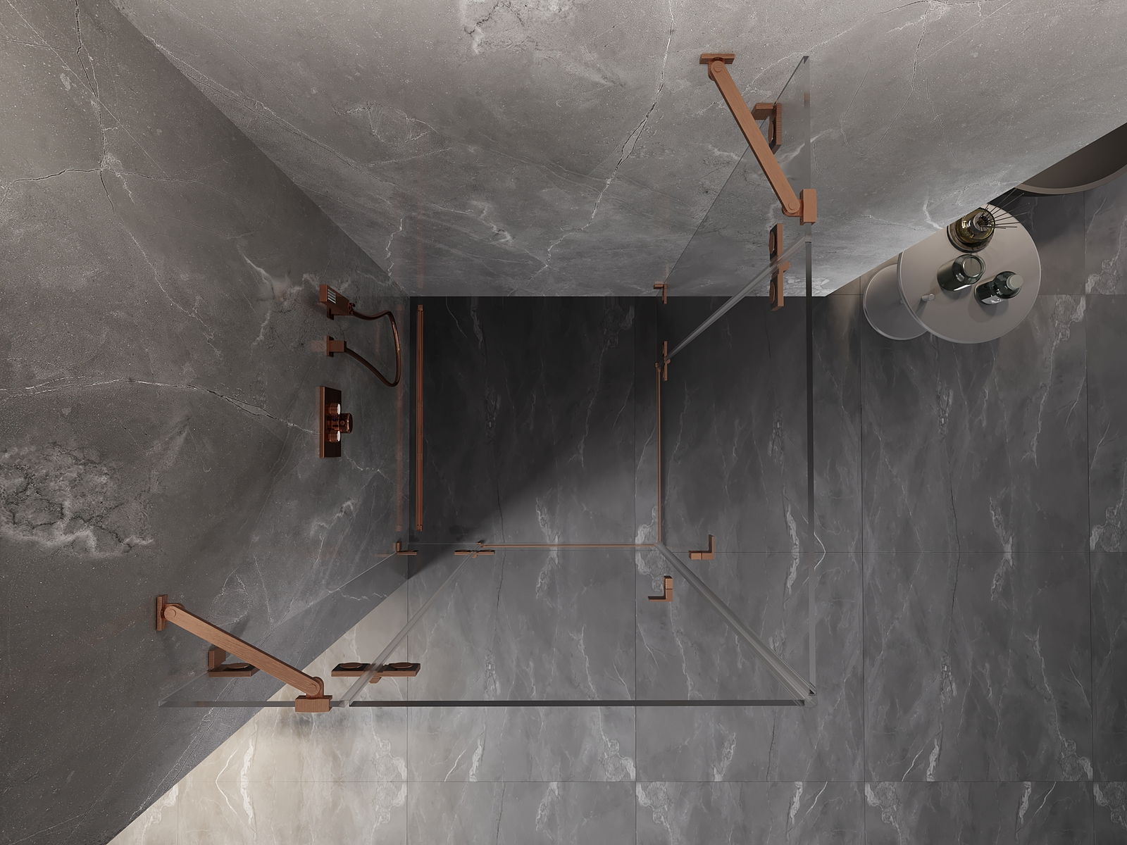 Mexen Lunar Duo шарнирна душ кабина 75 x 75 см, прозрачна, матиран мед - 834-075L-075P-65-00