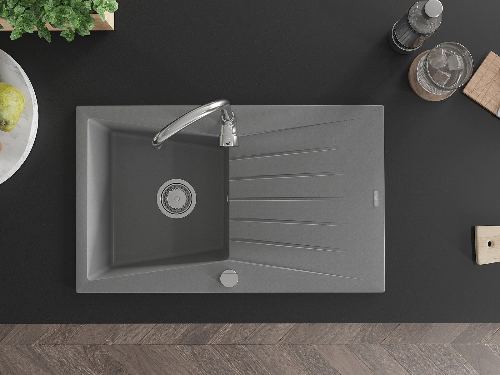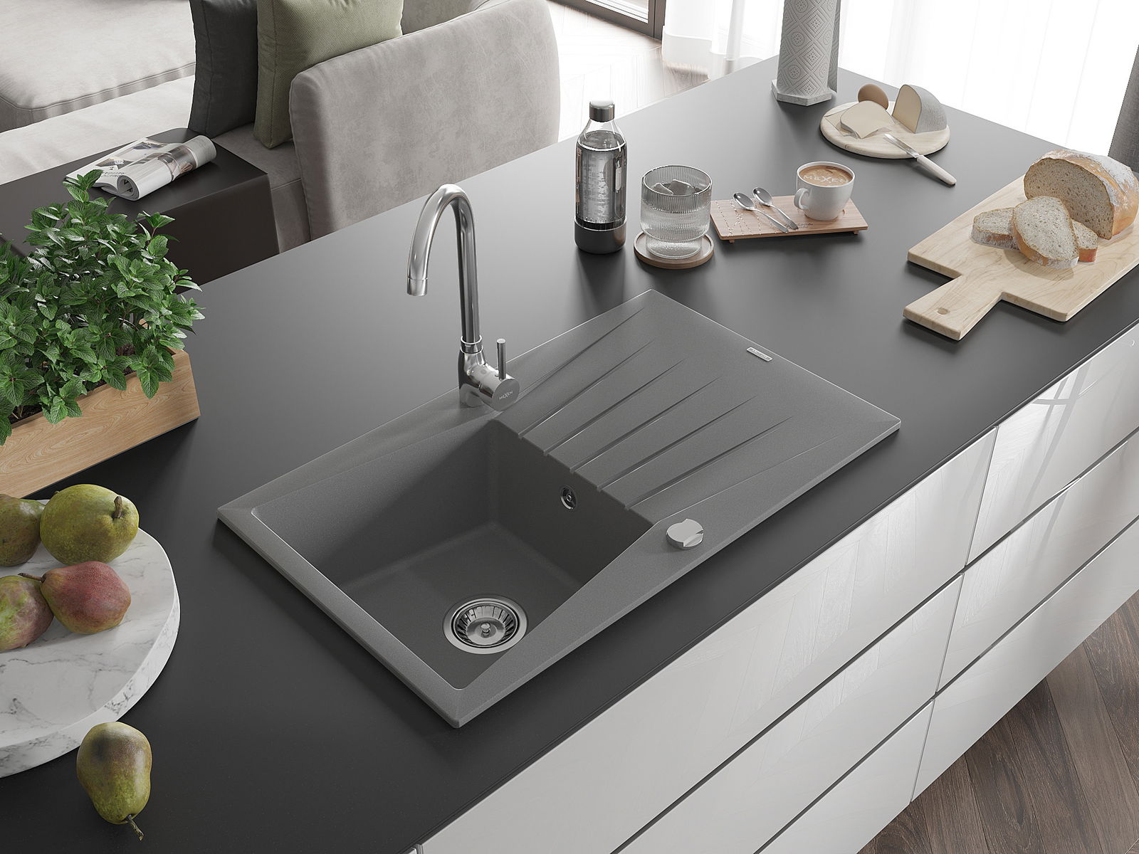 Мивката е направена от висококачествен гранит. Това е елегантно и най -вече практично допълнение към всяка кухня, независимо от нейния стил. Висококачествената и гранитна издръжливост осигуряват много години употреба.