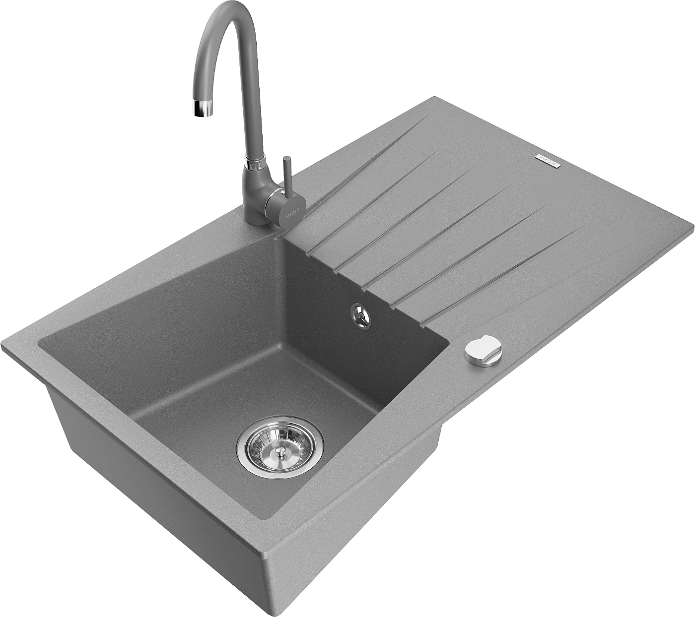 Mexen Cesar гранитна мивка с 1 камера, сушилник и кухненски смесител Telma, сив - 6514-71-670200-71