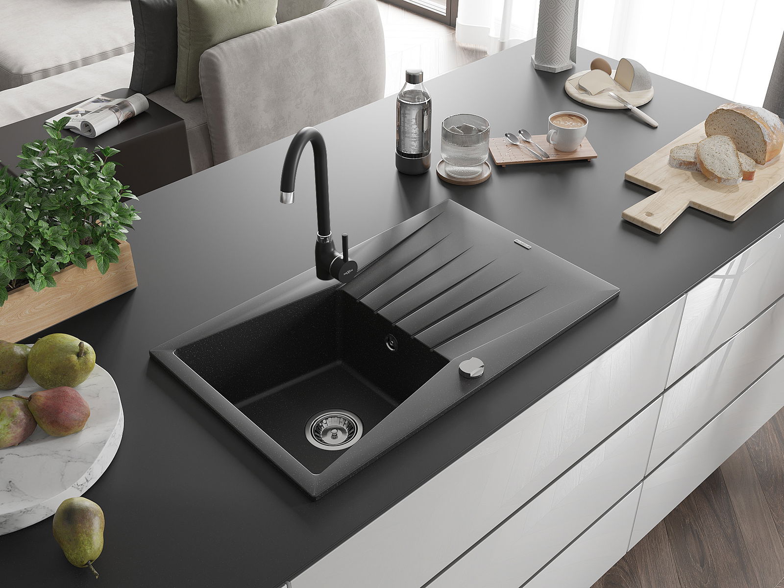 Мивката е направена от висококачествен гранит. Това е елегантно и най -вече практично допълнение към всяка кухня, независимо от нейния стил. Висококачествената и гранитна издръжливост осигуряват много години употреба.
