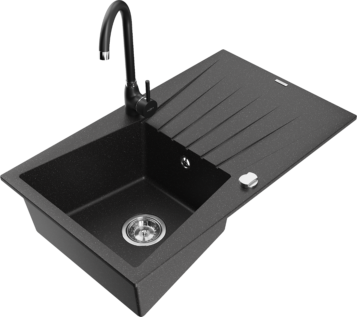 Mexen Cesar Гранитна мивка с 1 корито с отцедник и кухненски смесител Telma, черен/сребърен - 6514-73-670200-70
