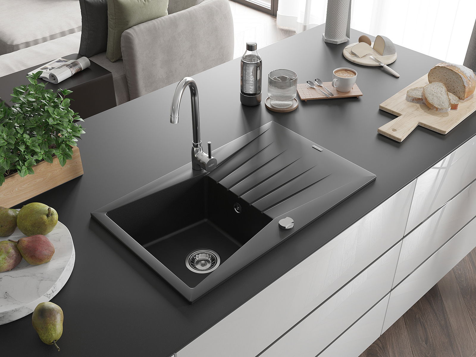 Мивката е направена от висококачествен гранит. Това е елегантно и най -вече практично допълнение към всяка кухня, независимо от нейния стил. Висококачествената и гранитна издръжливост осигуряват много години употреба.
