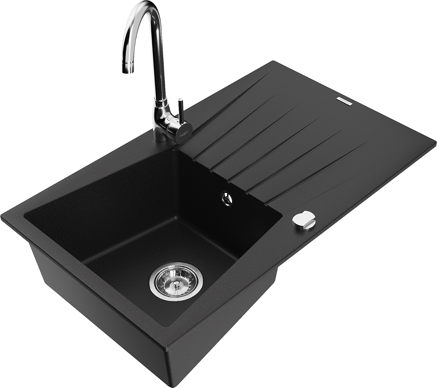 Mexen Cesar гранитна кухненска мивка с една камера и отцедник и кухненски смесител Telma, черен - 6514-77-670200-00