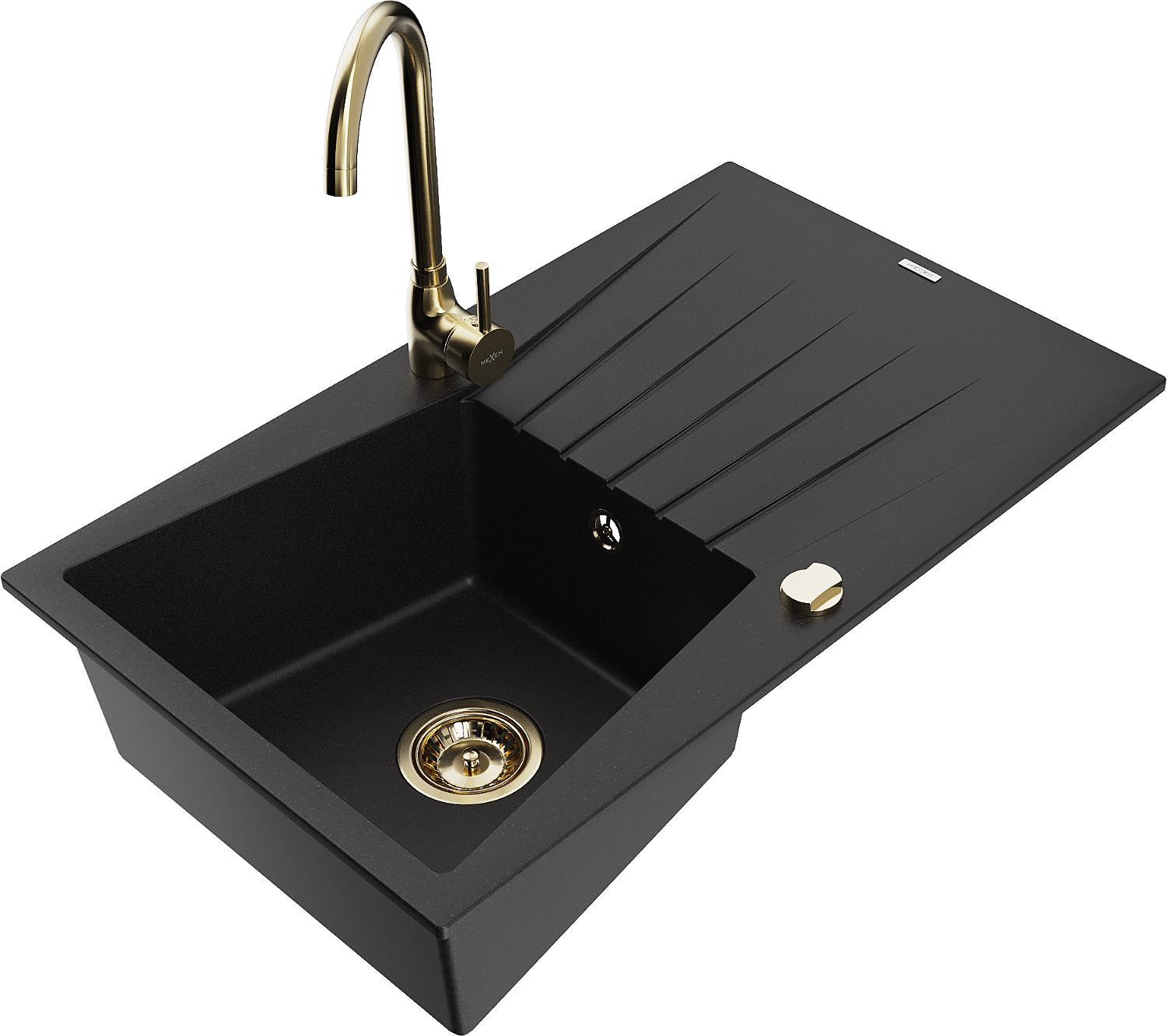 Mexen Cesar гранитна мивка с 1 отделение и отцедник и кухненски смесител Telma, черен - 6514-77-670200-50