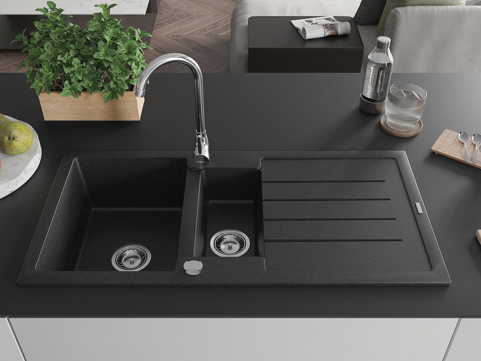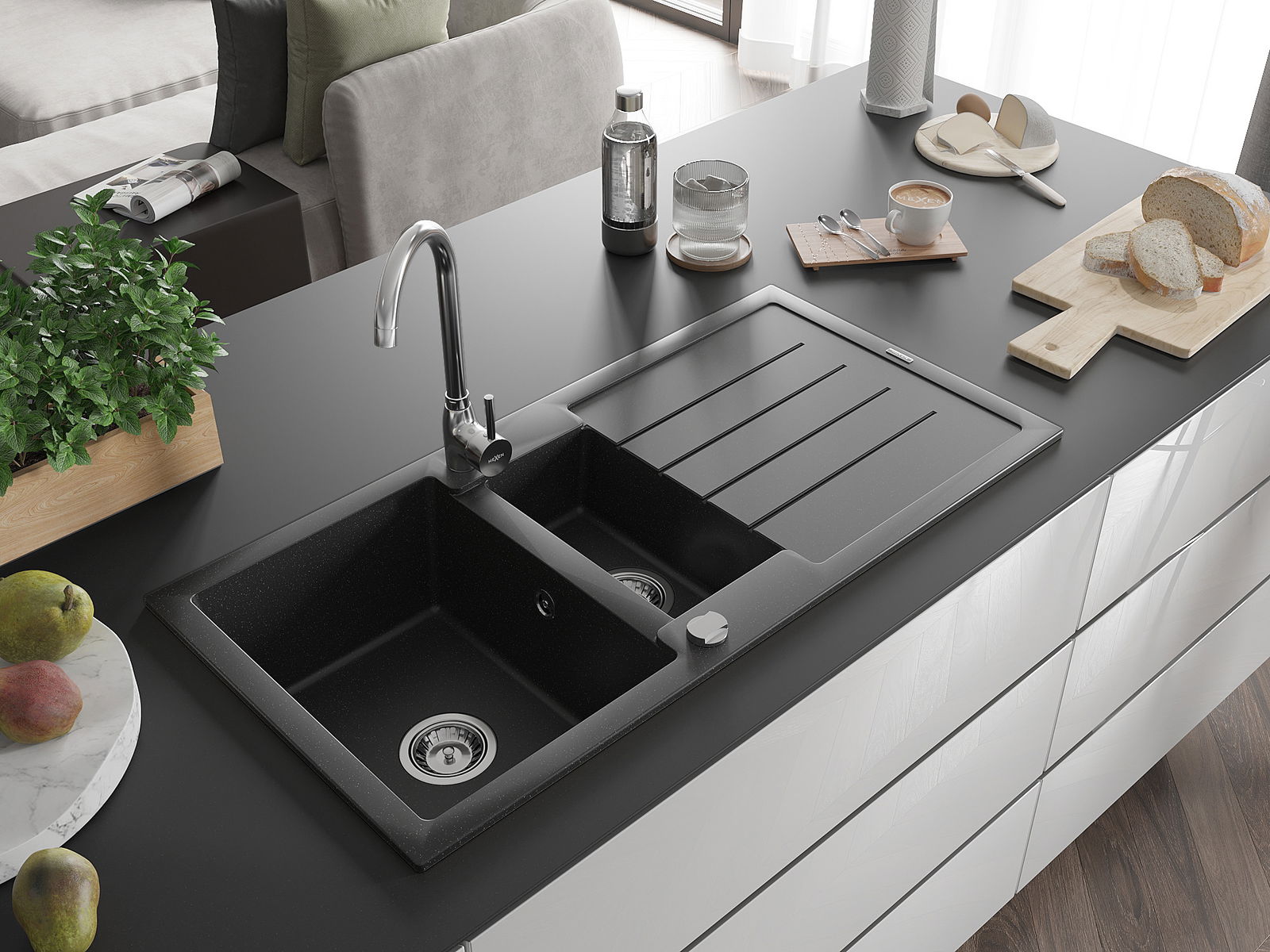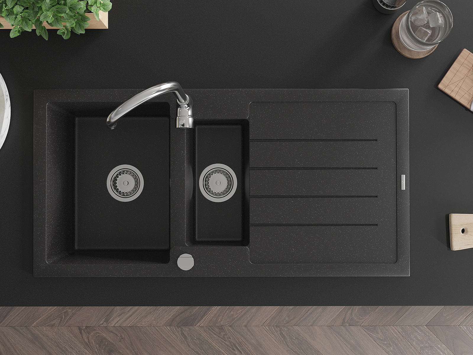 Мивката е направена от висококачествен гранит. Това е елегантно и най -вече практично допълнение към всяка кухня, независимо от нейния стил. Висококачествената и гранитна издръжливост осигуряват много години употреба.
