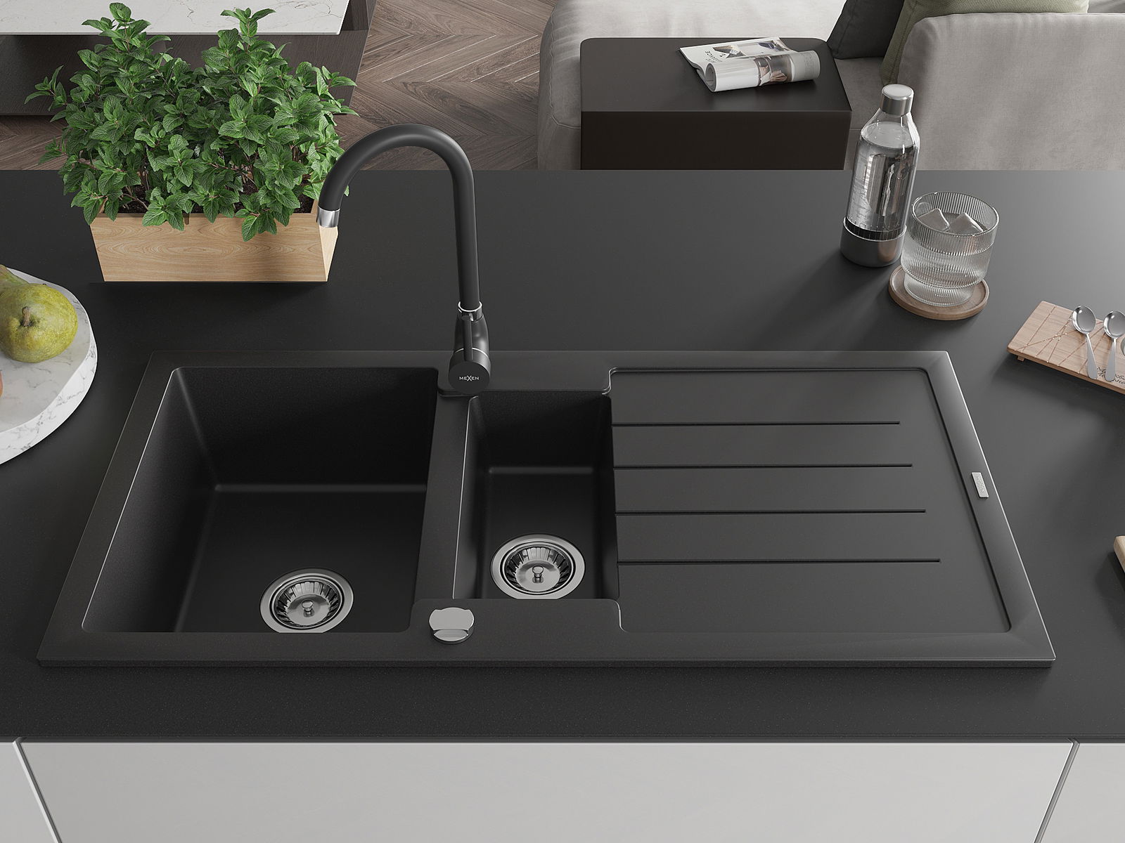 Мивката е направена от висококачествен гранит. Това е елегантно и най -вече практично допълнение към всяка кухня, независимо от нейния стил. Висококачествената и гранитна издръжливост осигуряват много години употреба.