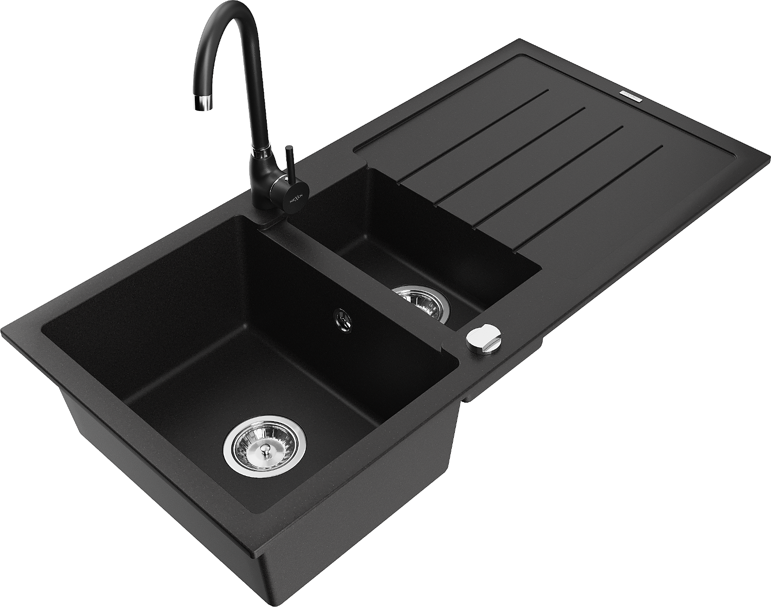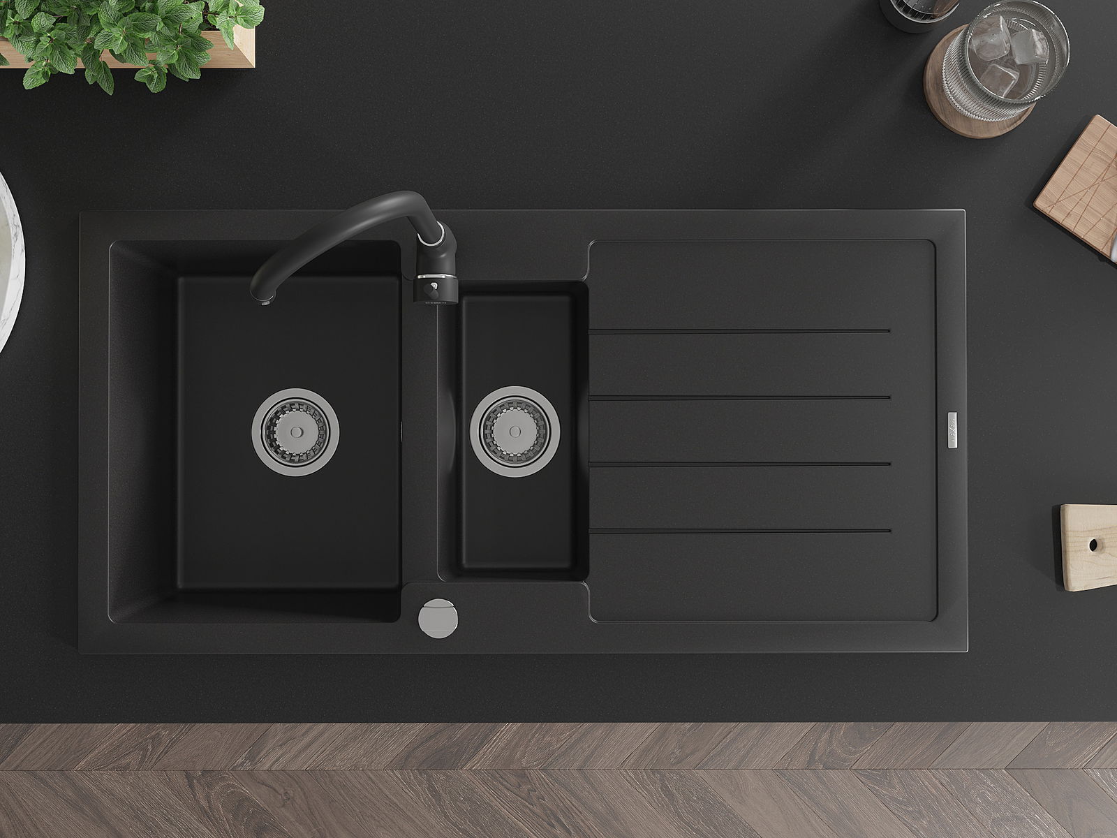 Mexen Andres гранитна мивка 1,5-камерна с отцедник и кухненски смесител Telma, черен - 6515-77-670200-70