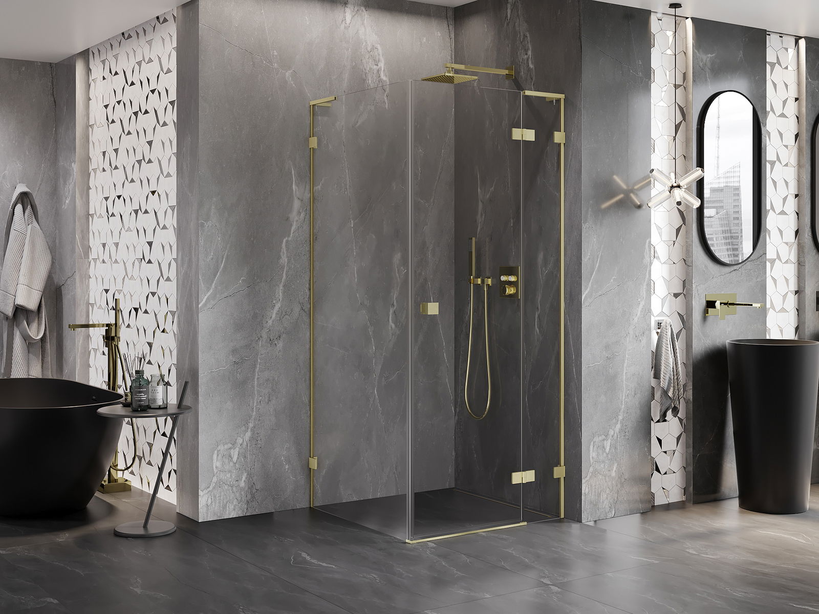 Mexen Lunar L душ кабина отваряща се надясно 70 x 70 см, прозрачна, златна четка - 834L-070-070-55-00-P
