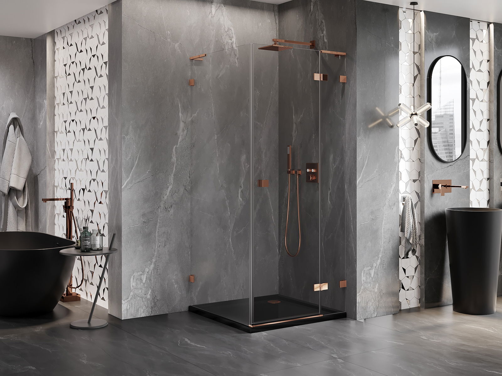 Mexen Lunar L душ кабина с врати отваряеми надясно 80 x 80 см, прозрачна, розово злато - 834L-080-080-60-00-P