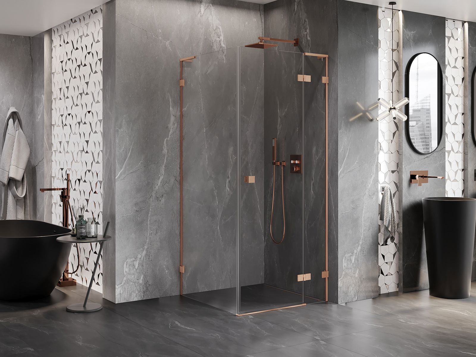 Mexen Lunar L душ кабина врата на панти дясна 90 x 90 см, прозрачна, четкана мед - 834L-090-090-65-00-P
