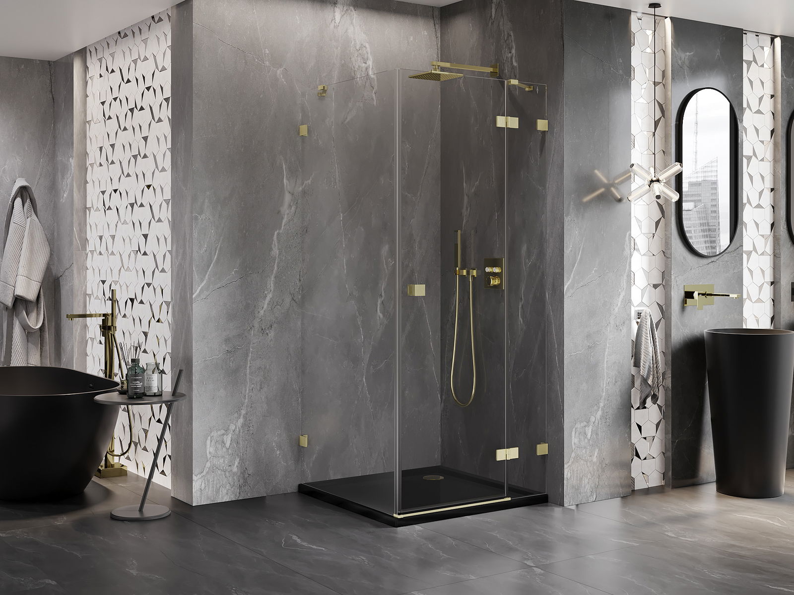 Mexen Lunar душ кабина с отваряща се врата дясна 90 x 90 см, прозрачна, четкано злато - 834-090-090-55-00-P
