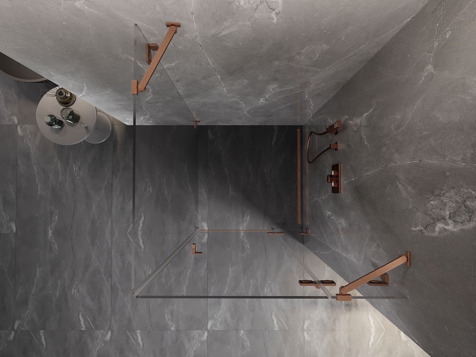 Mexen Lunar душ кабина с врата тип пантограф дясна 70 x 70 см, прозрачно стъкло, четкана мед - 834-070-070-65-00-P