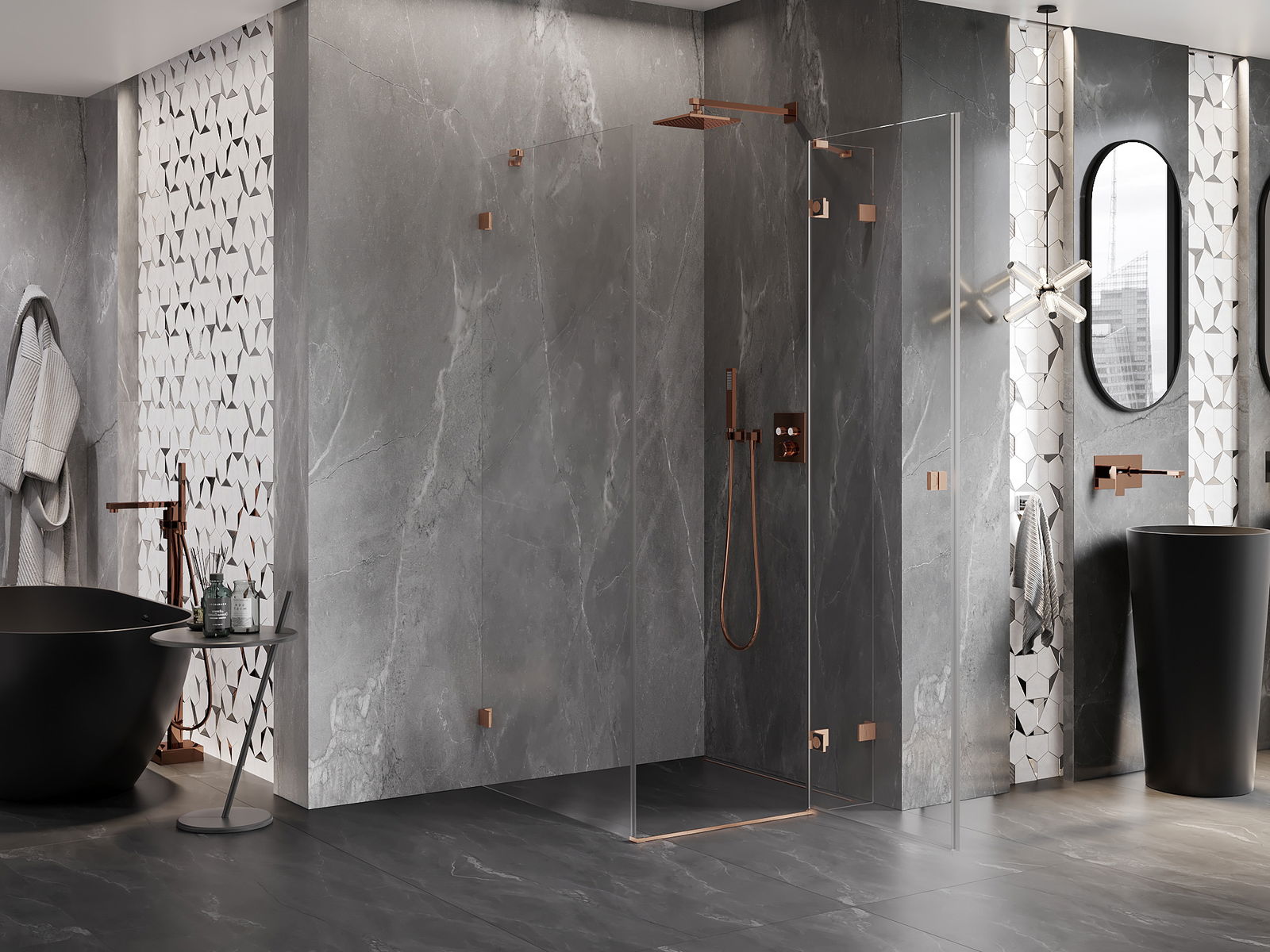 Скобите и пантите са изработени от много издръжлив месинг и създават плосък стъклен панел. Това е отличен избор, който съчетава елегантност, издръжливост и модерен дизайн. Благодарение на такива решения, душът придобива естетика и същевременно улеснява поддържането на чистота.