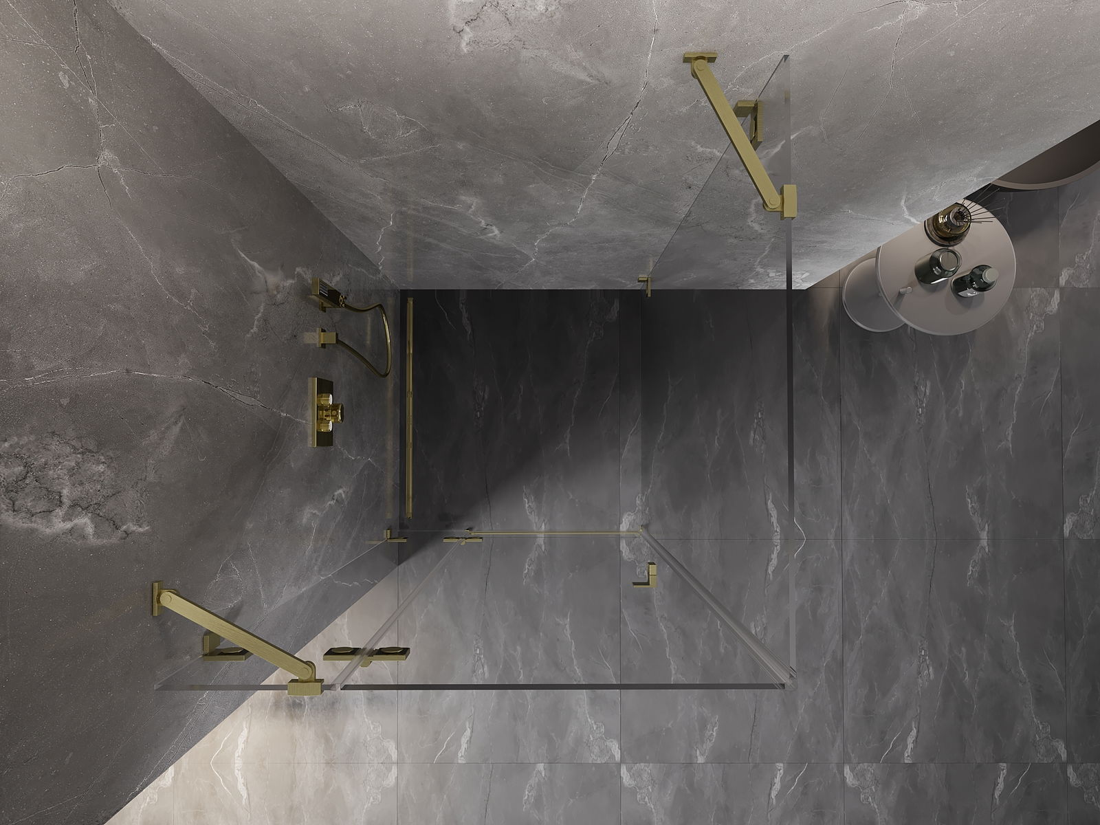 Mexen Lunar люлееща се лява душ кабина 90 x 90 см, прозрачна, златна четкована