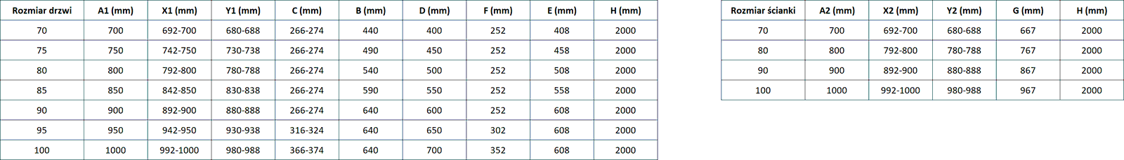 Размер: 100x100 см (лява врата 100 см, стена 100 см)