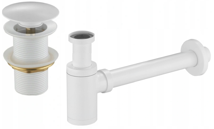 Mexen кръгъл полусифон за мивка с автоматична запушалка, без преливник, бял - 7991050-20