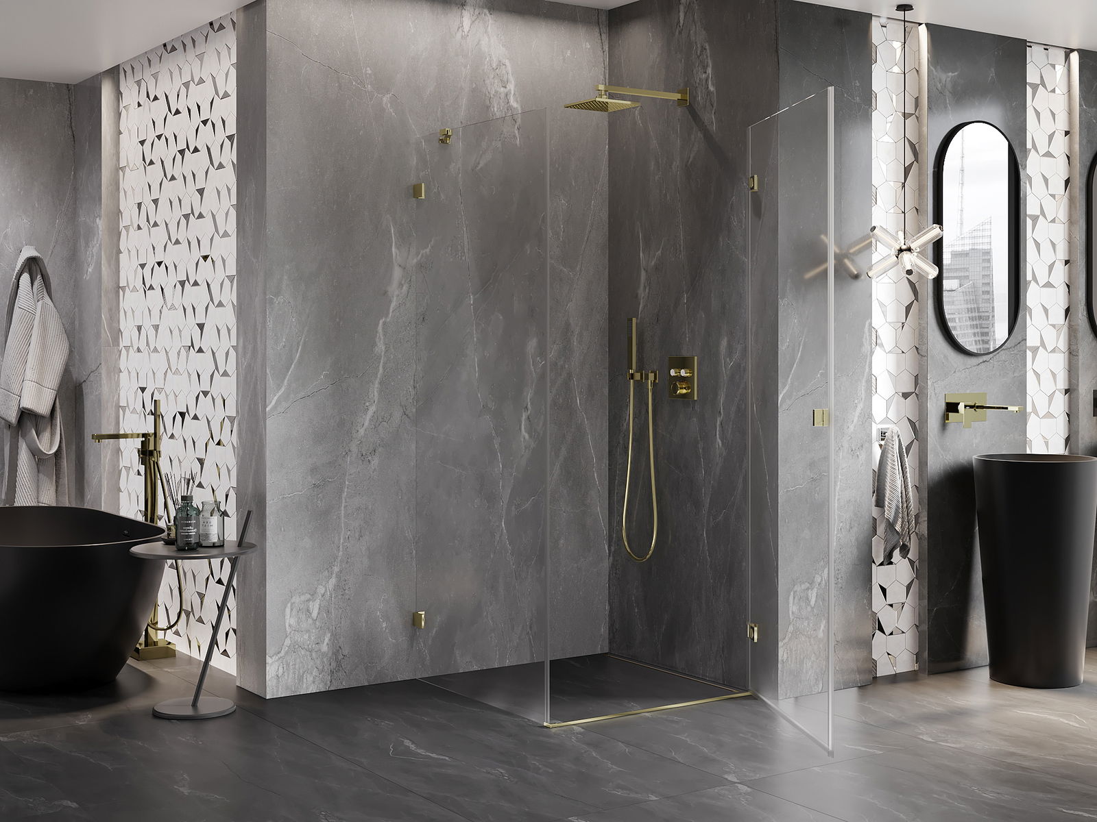 Mexen Lunar-B душ кабина отваряща се дясна 70 x 70 см, прозрачна, златна - 832-070-070-50-00-P