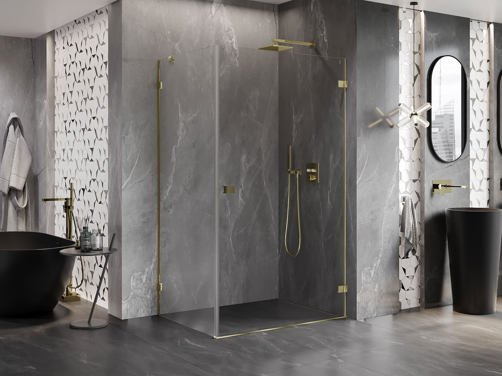 Mexen Lunar-B, дясна отваряща се душ кабина 95 x 90 см, прозрачна, златна - 832-095-090-50-00-P