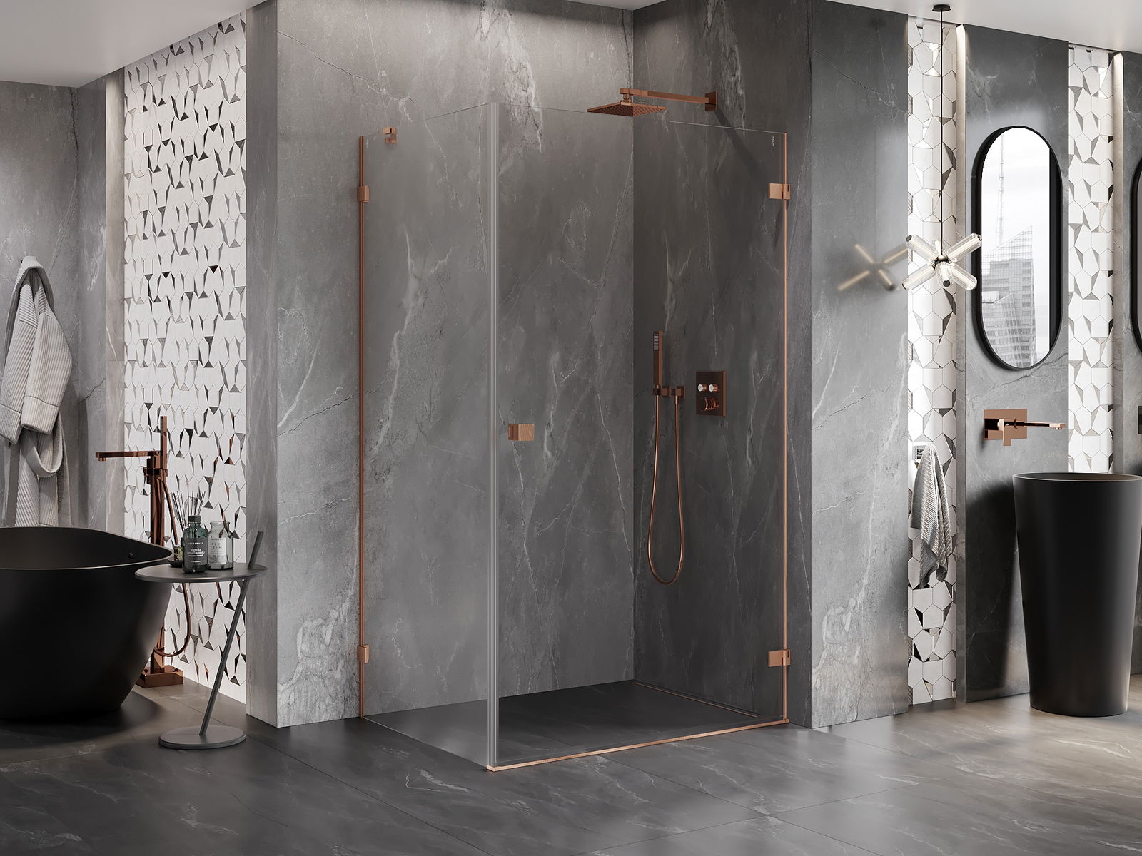 Mexen Lunar-B душ кабина с отваряема врата, дясна, 90 x 70 см, прозрачна, матирана мед - 832-090-070-65-00-P