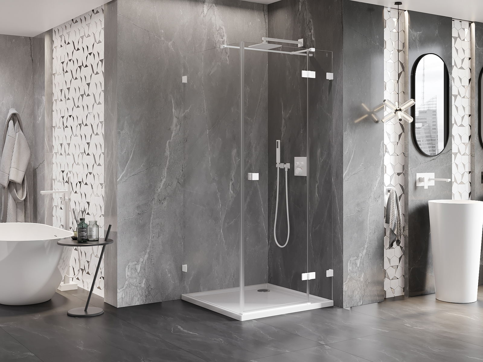 Скобите и пантите са изработени от много издръжлив месинг и създават плосък стъклен панел. Това е отличен избор, който съчетава елегантност, издръжливост и модерен дизайн. Благодарение на такива решения, душът придобива естетика и същевременно улеснява поддържането на чистота.