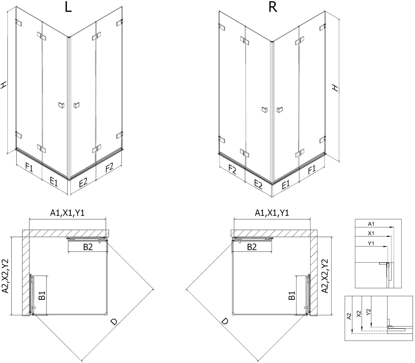 Възможността за сгъване на вратите, както навън, така и навътре, позволява да се осигури повече пространство, когато душът не се използва. Това е идеалното решение за по-малки бани, максимално използвайки наличната площ.