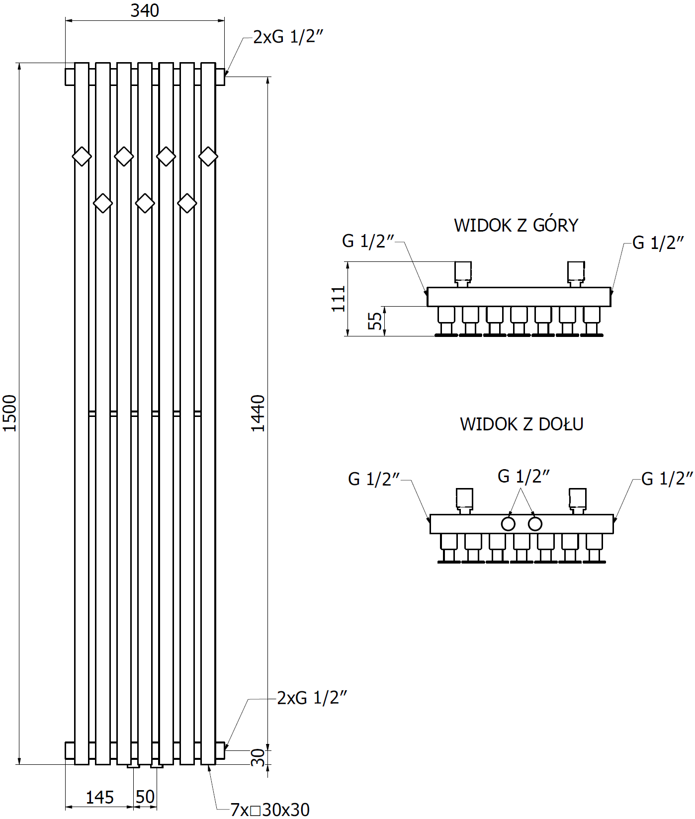 - 4xG ½″ отгоре и отдолу от дясната или лявата страна