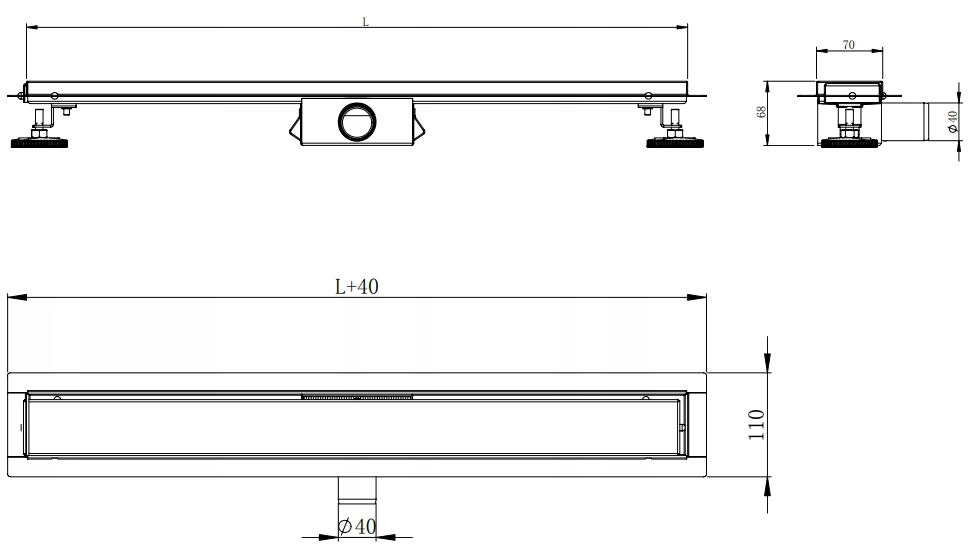 Отворът е оборудван с регулируеми крака, които ви позволяват да регулирате подходящата височина и нивото на изтичане на неравномерна повърхност. По този начин канализацията е още по -подходяща за условията на дадена баня.