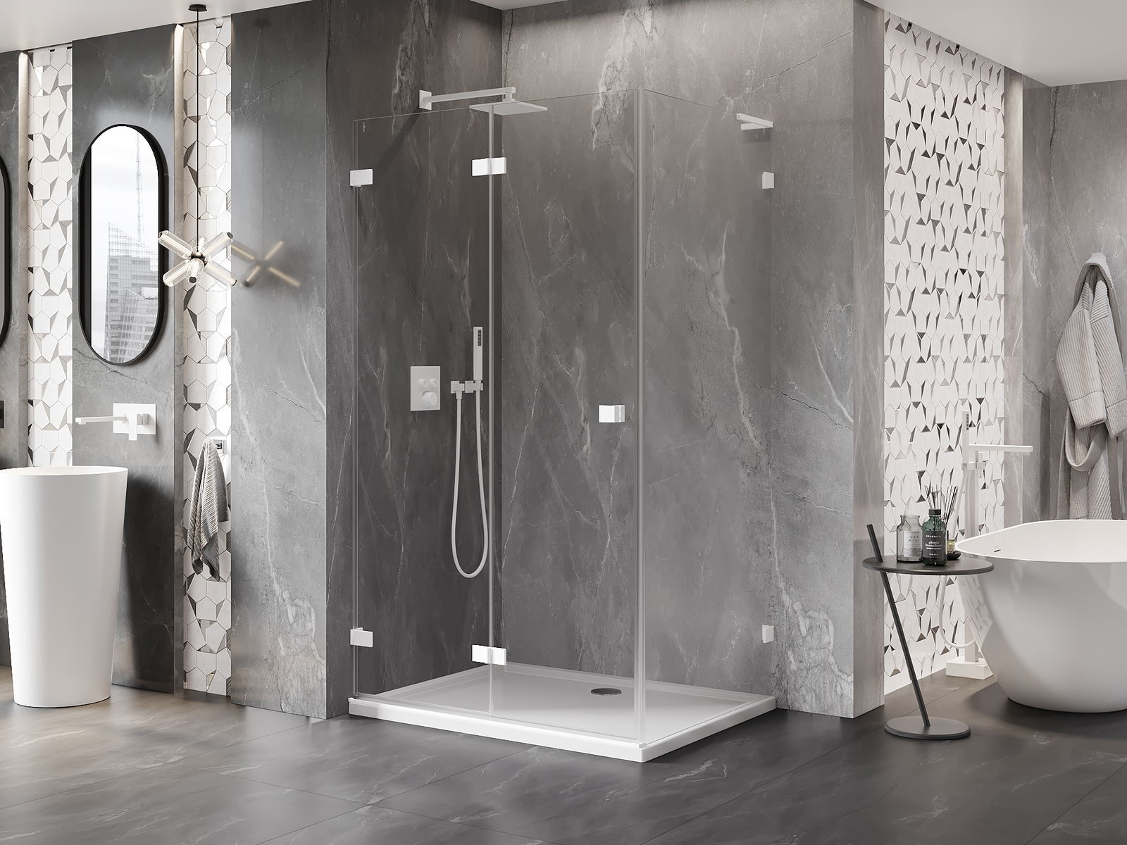 Възможността за сгъване на вратите, както навън, така и навътре, позволява да се осигури повече пространство, когато душът не се използва. Това е идеалното решение за по-малки бани, максимално използвайки наличната площ.