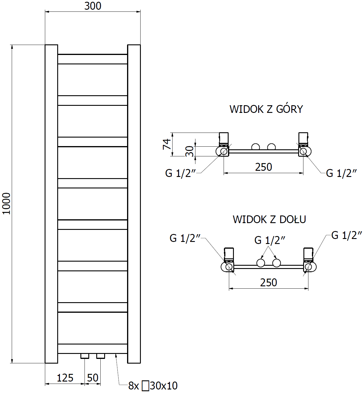 Mexen Bolt баня радиатор 1000 x 300 мм, 197 W, бял - W126-1000-300-00-20