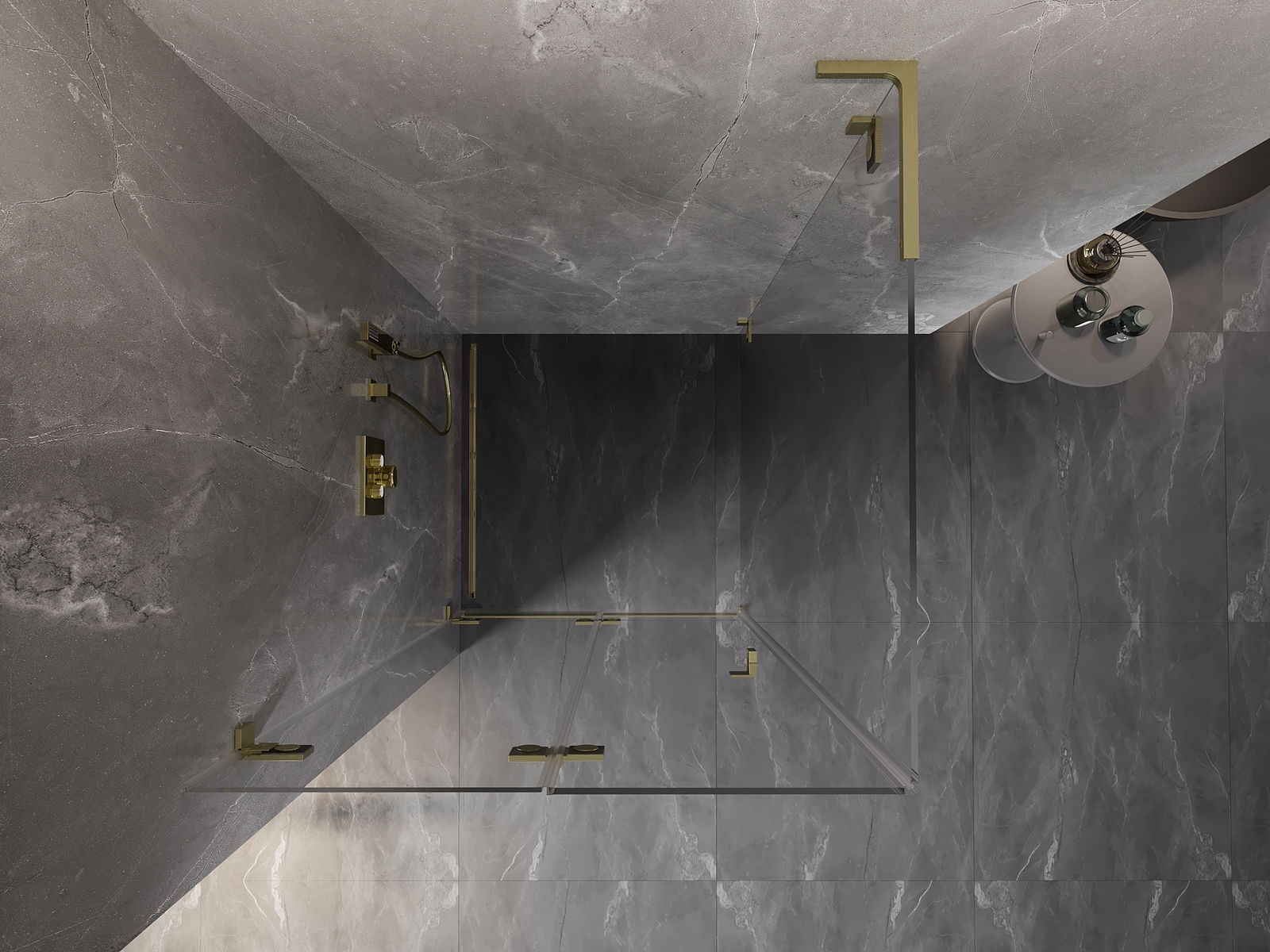 Mexen Lunar-F L сгъваема лява душ кабина 90 x 90 cm, прозрачна, златиста четка - 836L-090-090-55-00-L
