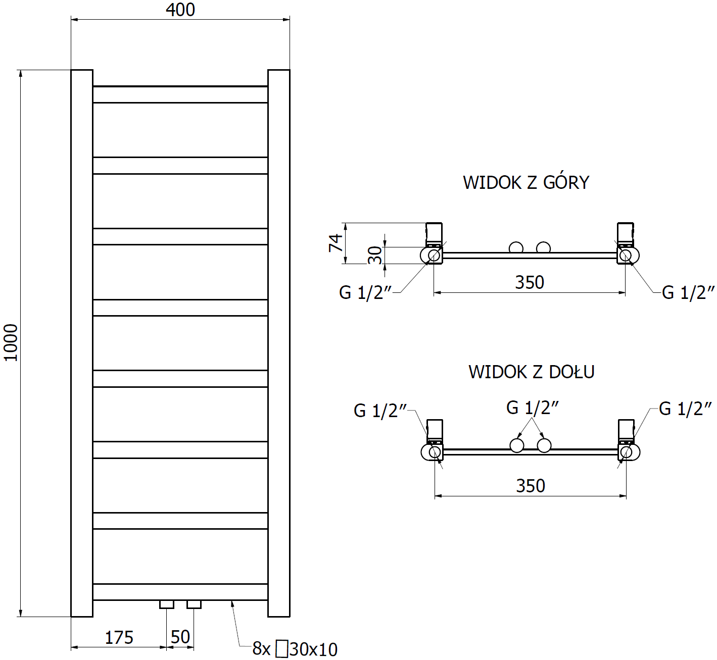 Включени: закачалки, монтажен комплект, запушалки и въздушен клапан