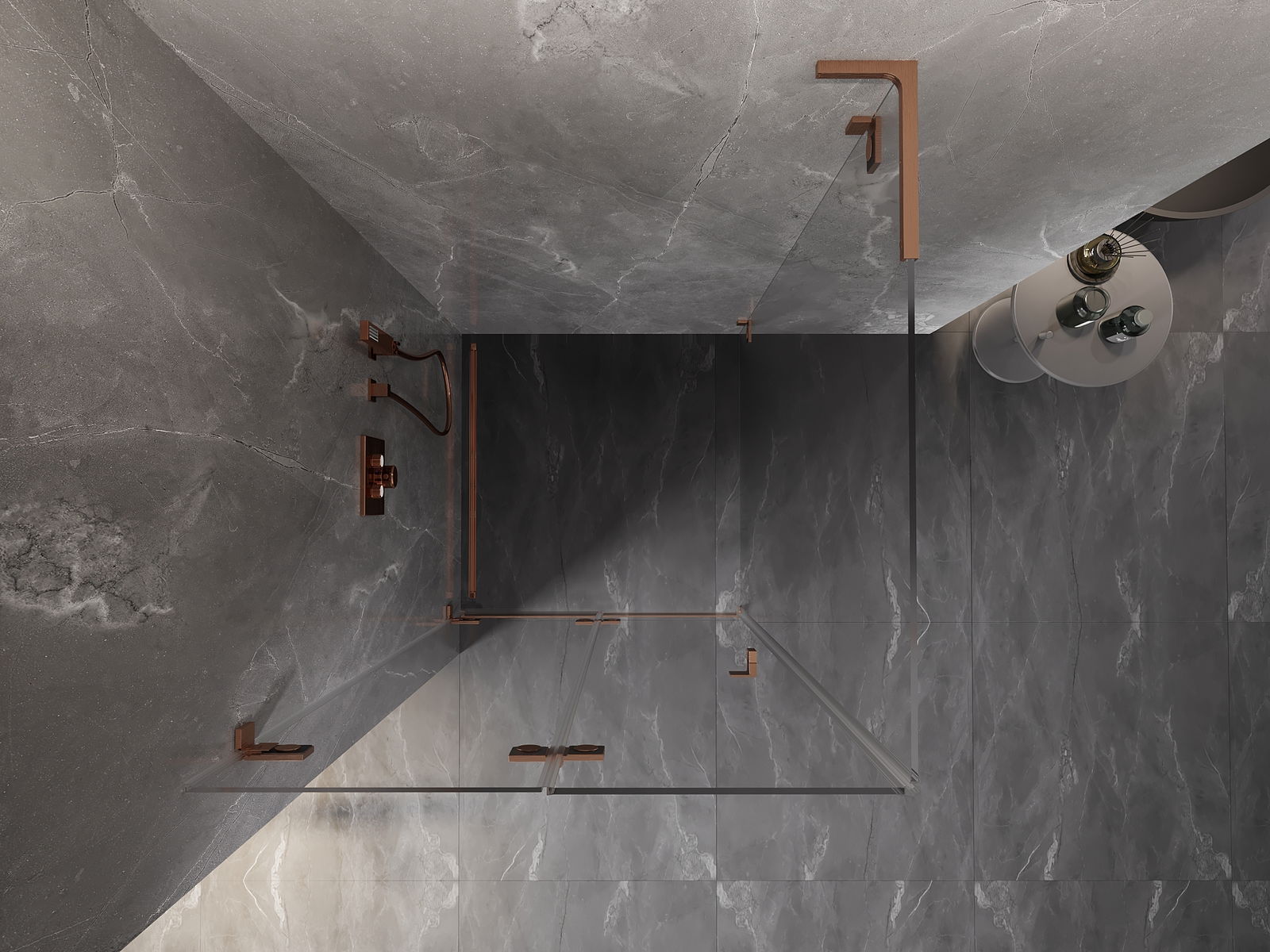 Mexen Lunar-F L сгъваема, лява душ кабина 80 x 80 см, прозрачно стъкло, матиран мед - 836L-080-080-65-00-L