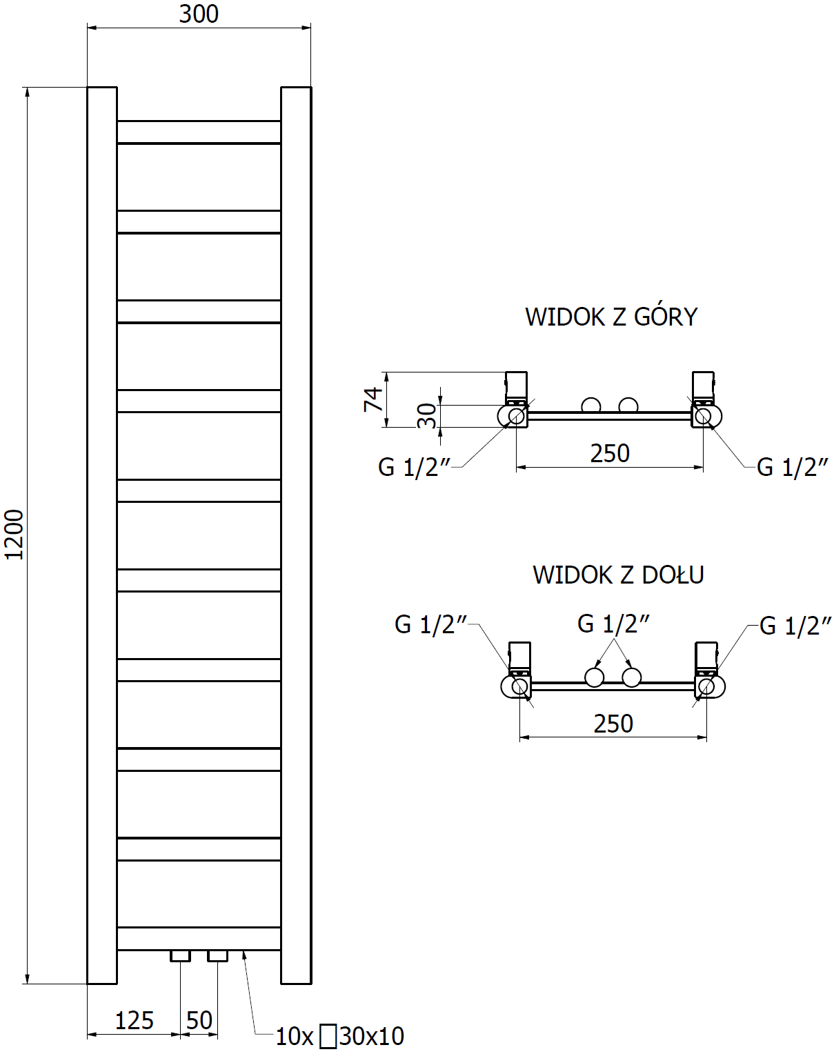 Mexen Bolt радиатор за баня 1200 x 300 мм, 189 W, хром - W126-1200-300-00-01