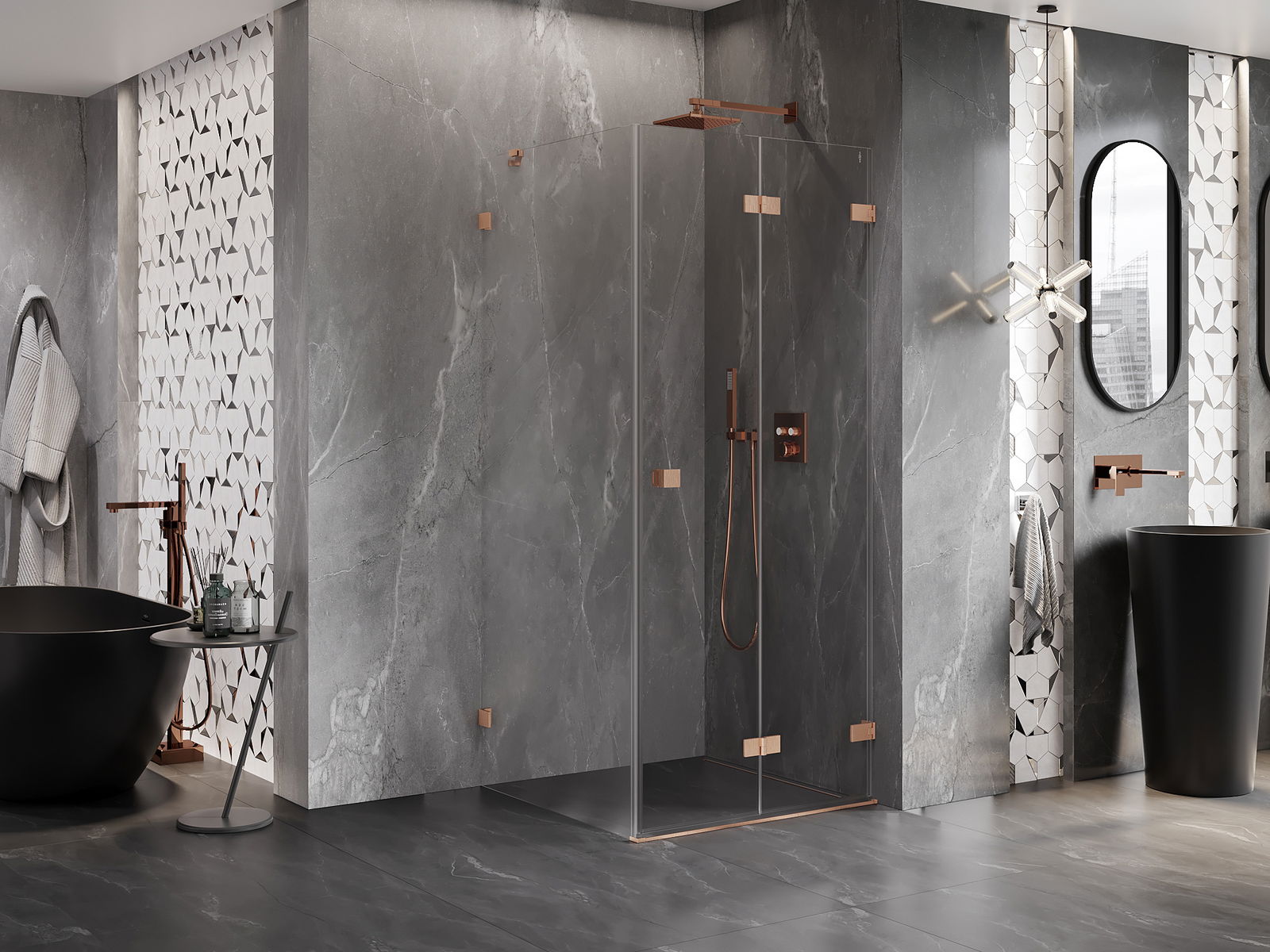 Възможността за сгъване на вратите, както навън, така и навътре, позволява да се осигури повече пространство, когато душът не се използва. Това е идеалното решение за по-малки бани, максимално използвайки наличната площ.